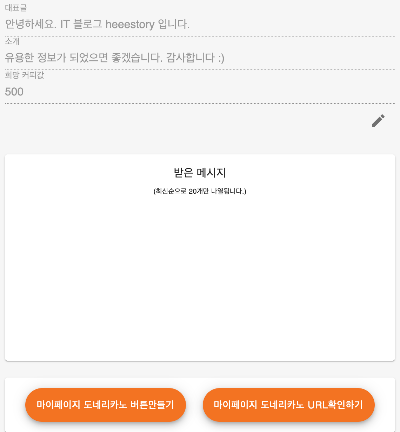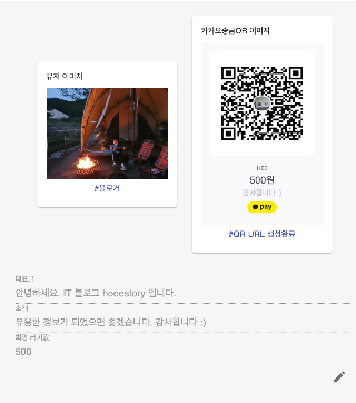 - 회원가입을 하게되면 마이페이지로 이동하게 됩니다. 마이페이지는 사용자들에게 노출되는 페이지입니다. 그렇기 때문에 대쉬보드를 클릭하여 개성있는 글과 함께 자신의 카카오 QR코드 이미지를 업로드하여 업데이트 합니다. 화면에 보이는 펜을 누루면 업데이트를 할 수 있습니다.